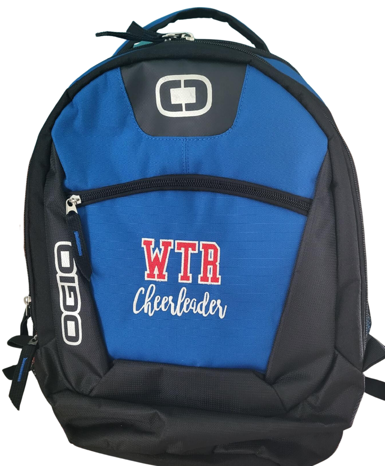 WTR Cheerleader Embroidered on the front as well as a name added to the strap if you would like.